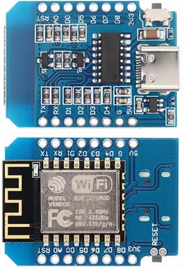 ![]() | Il s'agit du D1 mini, c'est une mini carte WIFI basée sur ESP-8266EX. 11 broches d'entrée/sortie numériques, toutes les broches sont prises en charge par interruption/pwm/I2C/un fil (sauf D0) 1 entrée analogique (entrée 3,3 V max) Connexion USB-C | aliexpress | 3,150€ | 1 | ||||||||||||||||||||||||||||
