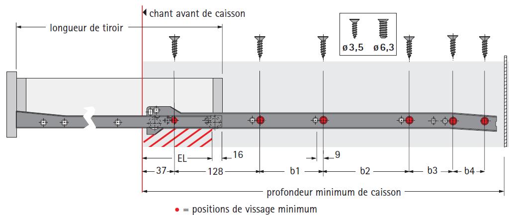 Pour le montage c'est au pas de 32mm. L'idéal c'est de se faire un gabarit.