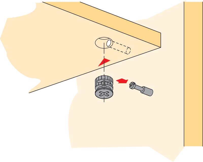 Pour la fixation d'un tiroir ou d'une chanière par exemple