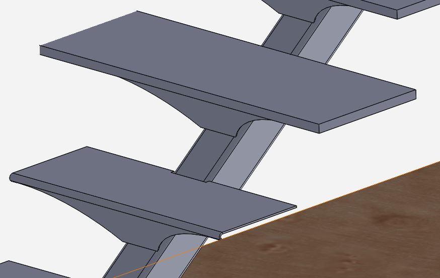 Escalier comportant un limon central. Ne pas négliger le temps passé à concevoir et réaliser les rambardes.