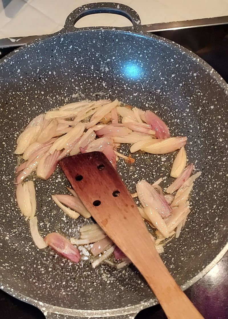 - Mettre les échalottes dans une poele avec du beurre jusqu'a ce qu'elles deviennent transparente