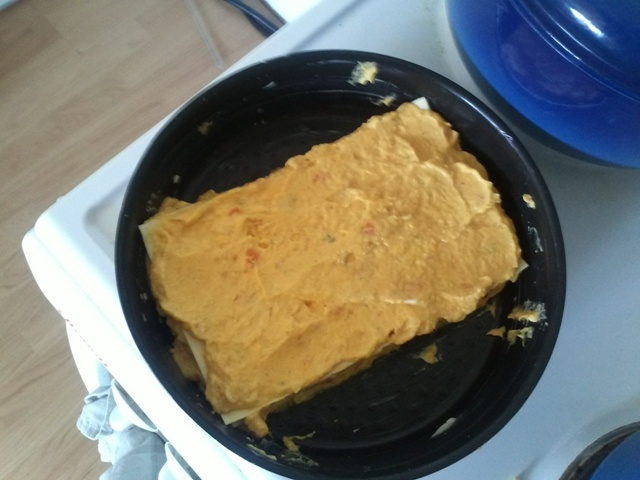 - Mettre un couche au fond d'un plat hermétique (La moitiè du mélange)