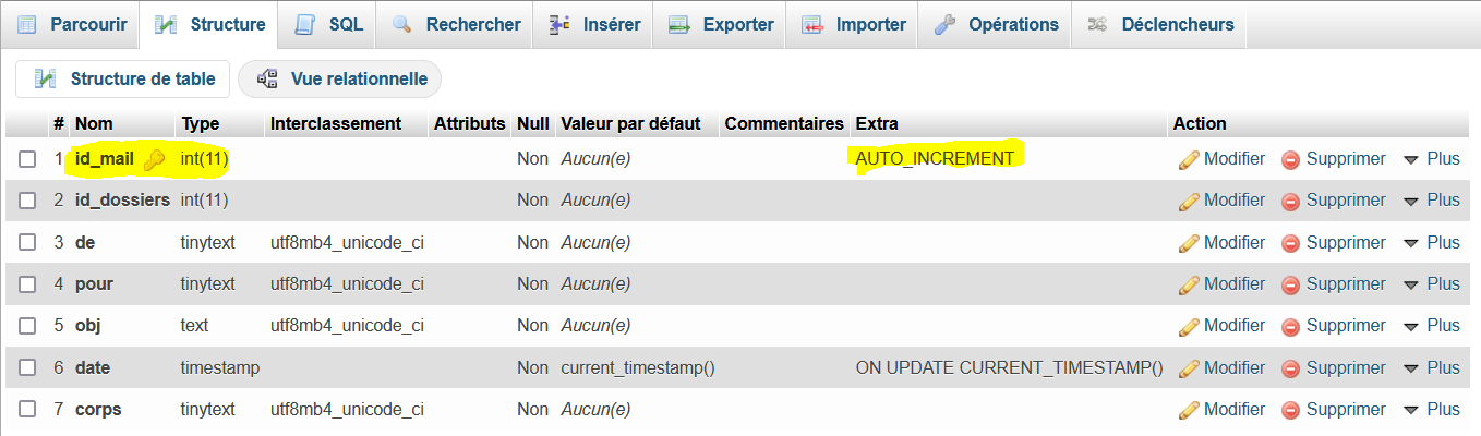 La clé primaire est id_mail