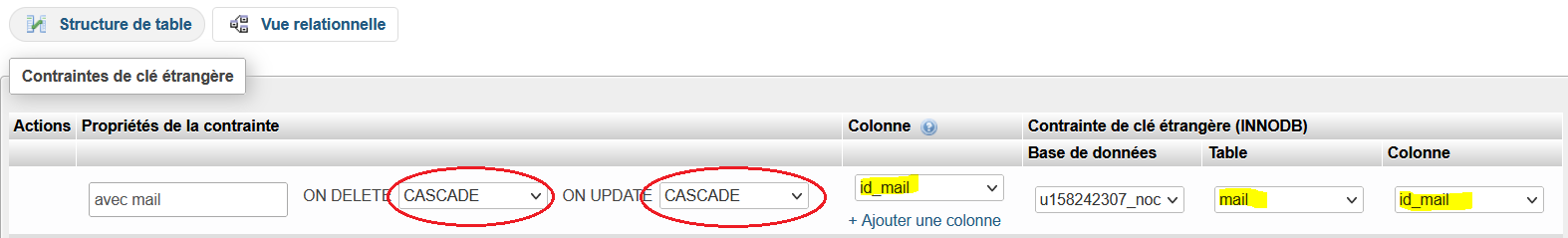 Lorsque nous supprimons un mail, il faut que les pièces jointes disparaissent avec et non le contraire. Nous allons alors aller dans la vue relationnelle de PJ puis: