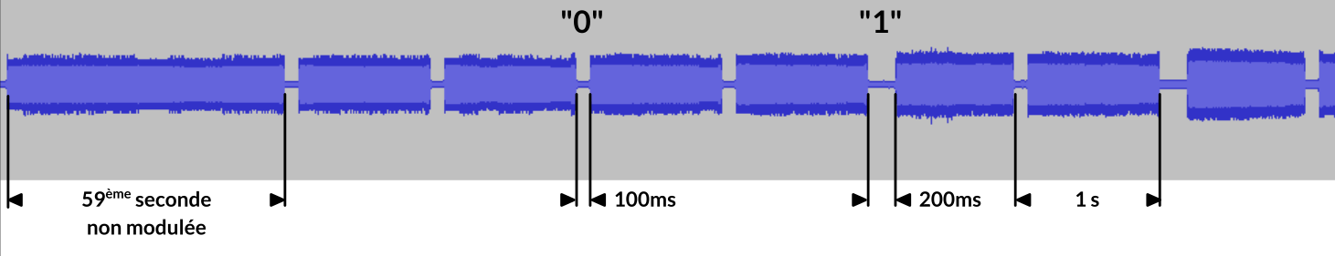 - Seule la 60e seconde n’est pas modulée et permet d’annoncer le début d’une nouvelle trame