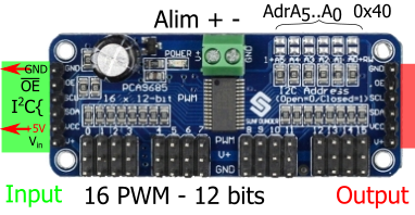 ![]() | Bouclier moteur pour WeMos D1 mini I2C double pilote de moteur TB6612FNG (1A) V1.0.0