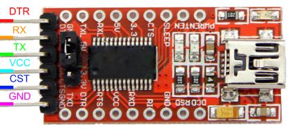 ![]() | FTDI232 USB 3.3V 5.5V à TTL Module adaptateur série Mini Port Prise en charge 3.3V, 5V Chipset FT232RL L'alimentation USB a une protection contre les surintensités, en utilisant un fusible auto-restauration 500MA Indicateur de communication d'émetteur-récepteur RXD/TXD Définition de broche: DTR,RXD,TXD,VCC,CTS,GND Taille du Module: 36x17.5mm | 0,000€ | 1 | |||||||||||||||||||||||||||||