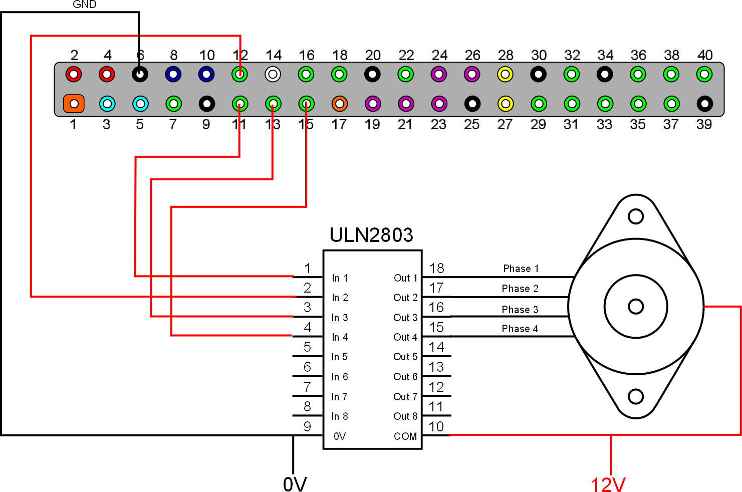 Contrôler d'un moteur pas à pas sur GPIO Nomenclature : Transistor NPN : 2N2222 Résistances : 1x 4,7kΩ / 1x 10kΩ Diode : 1N4148 Voir le programme stepper.py